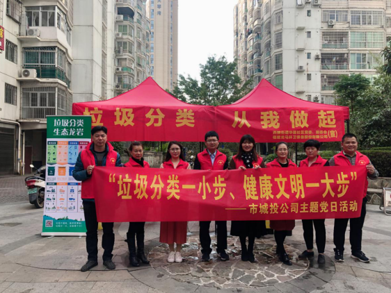 為普及垃圾分類知識,增強黨員干部的垃圾分類意識,12月30日下午,市城投公司志愿者開展以“垃圾分類一小步、健康文明一大步”主題黨日活動,公司黨支部黨員志愿者實地參加龍環公司垃圾分類宣教和實踐活動,在龍巖中心城市垃圾分類試點小區恒興綠景開展宣傳活動,通過向小區居民及商鋪講解垃圾分類標準,發放垃圾分類宣傳單、氣球,播放垃圾分類歌謠等形式,引導市民養成垃圾分類的好習慣,積極營造“垃圾分類·從我做起”的濃厚氛圍。